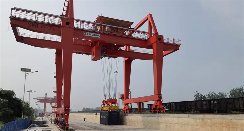 该项目包含3台悟空体育40.5t-18m轨道式集装箱门机,用于徐州交通控股港务有限公司顺堤河铁路专用线改建工程。目前三台起重机产品均已交付使用,将进一步提高铁路集装箱装卸效率,为顺堤河作业区增加300万吨的吞吐能力。