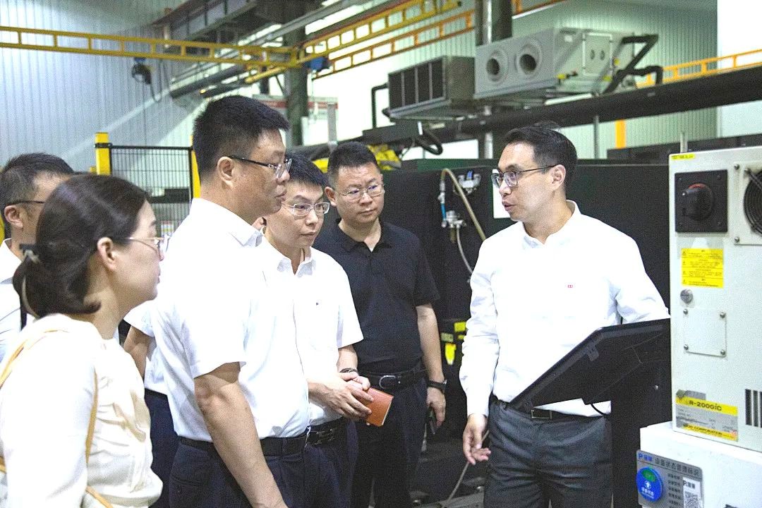 座谈会前,杨余明一行参观了悟空体育展厅、轻型联合车间及精密配件生产车间。