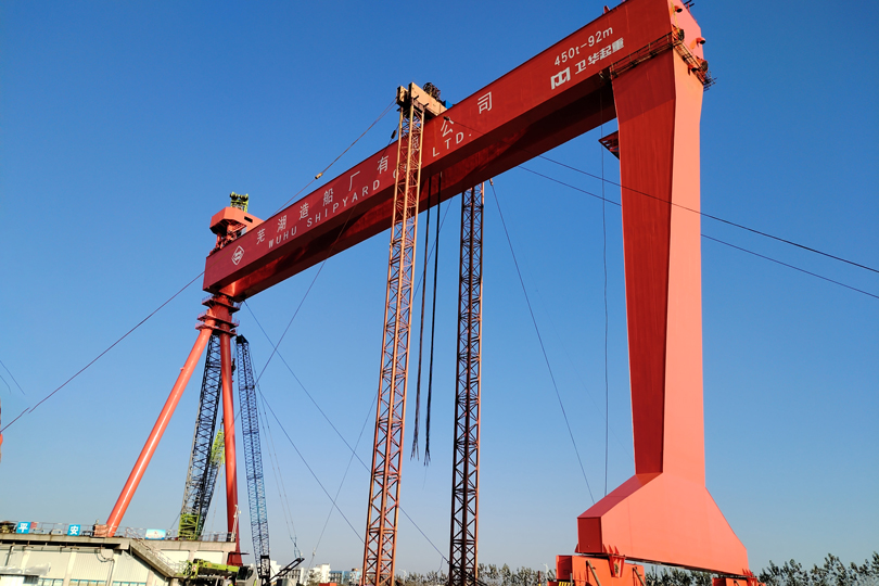创新为舵!悟空体育450吨造船门机顺利吊装