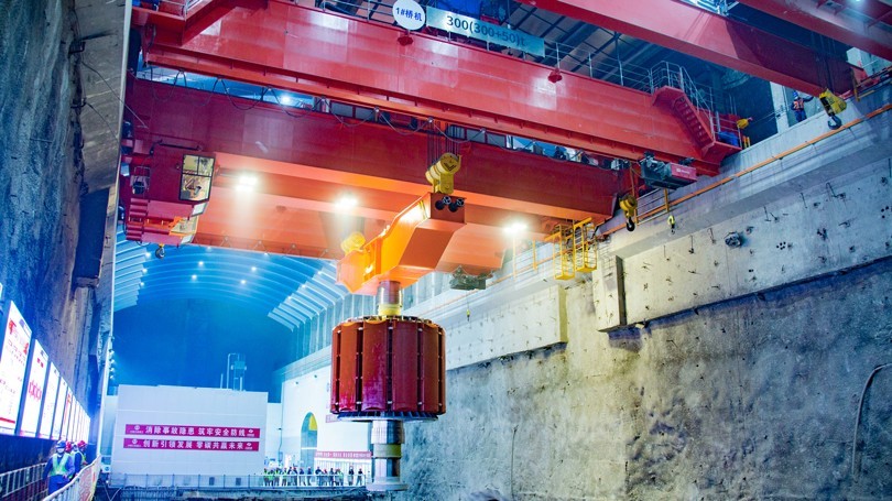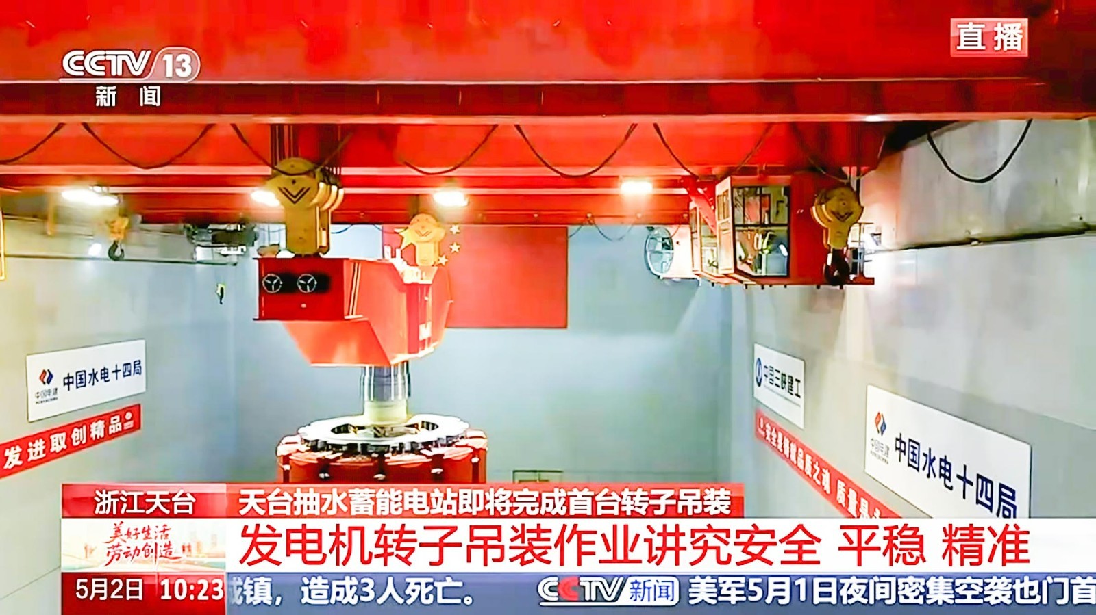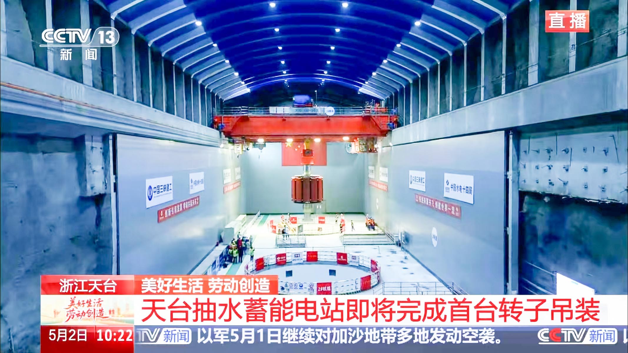 5月2日上午,在中央电视台新闻直播现场,河南悟空体育两台300吨新中式桥式起重机将浙江天台抽水蓄能电站1号机组的转子沿着预定的吊装路线平稳、精准地吊入1号机坑,标志着我国首台单机容量425兆瓦抽水蓄能机组安装工程取得里程碑式进展。