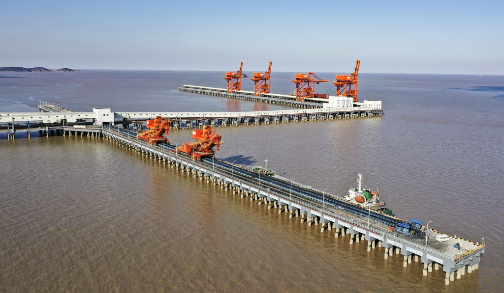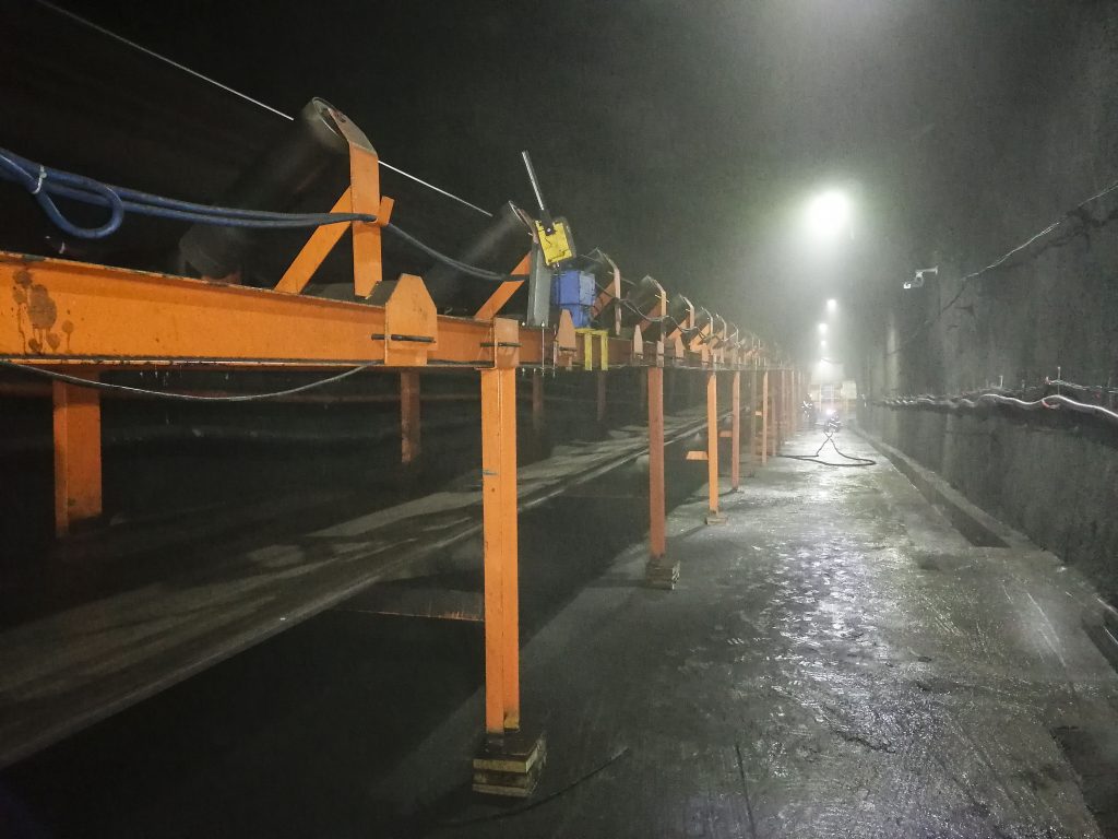 悟空体育承接的浙江石油化工有限公司4000万吨/年炼化一体化基地配套码头工程干散货码头带式输送机及附属设备系统装置项目,包含8条皮带机及其他附属设备系统,其中4条2200mm大带宽带速5m/s,运量7680t/h,采用中部三驱动布置形式,电机功率3x800kw,单机长度950m。