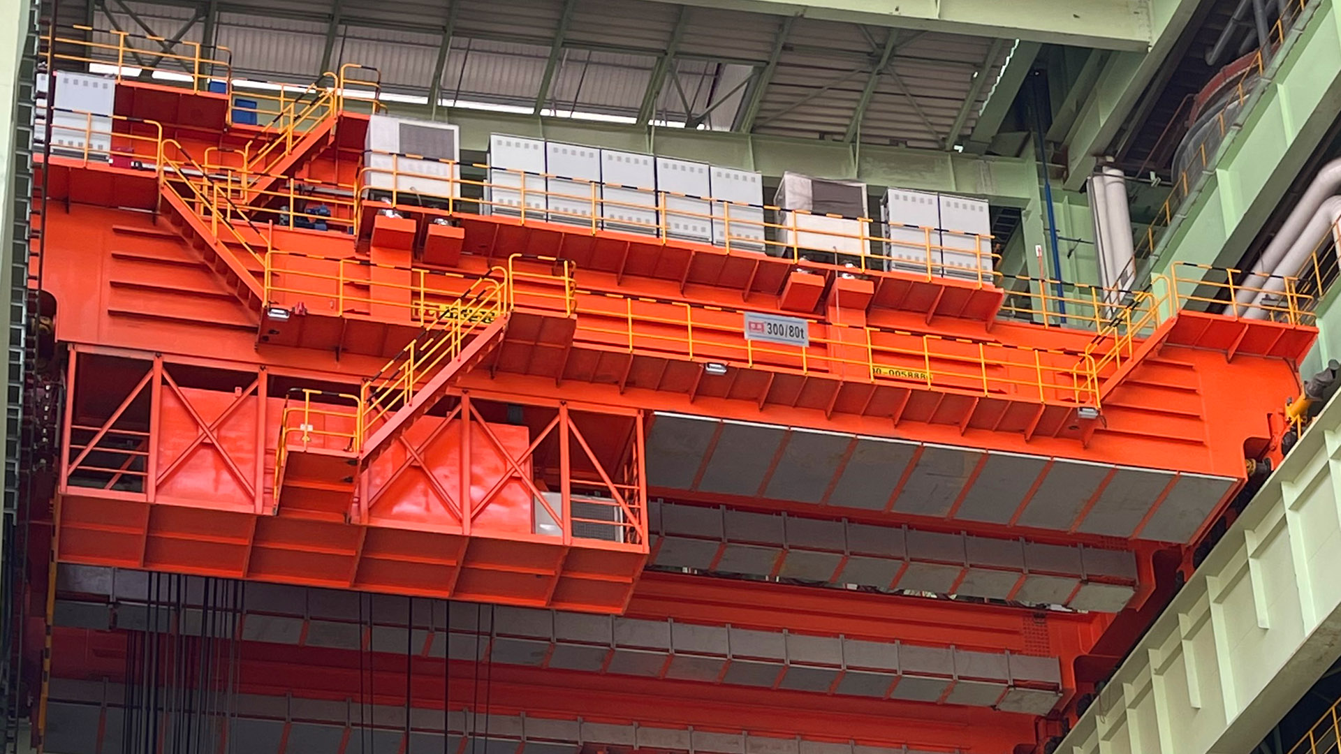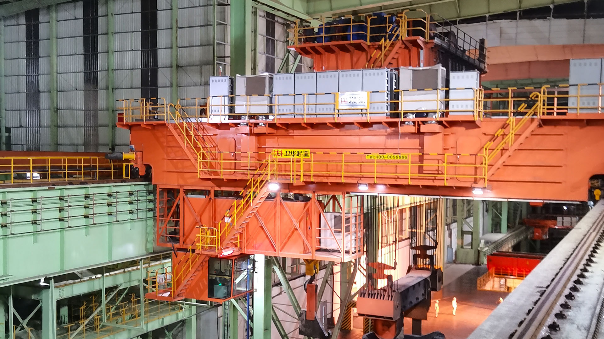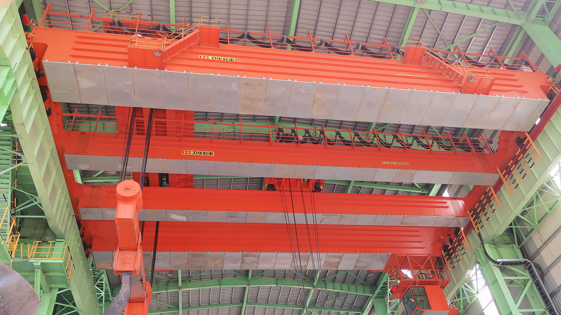 铸造起重机是炼钢连铸工艺中的主要设备,主要用于转炉加料跨向转炉兑铁水;在精炼跨将钢液包吊运至精炼炉或在钢水接受跨将钢液吊运到连铸大包回转台上。