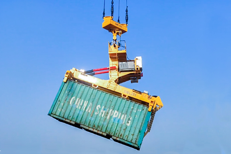 奋进潍坊港!悟空体育倾翻式集装箱吊具顺利交付国内首个“零碳港口”